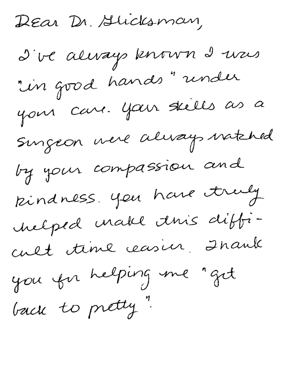 Dr. Glicksman is a board-certified plastic surgeon who has been committed to delivering expert, state-of-the-art care for her patients for over 25 years. The doctor performs all of her own consultations, procedures, and treatments and does not use “practice extenders” to care for her patients.